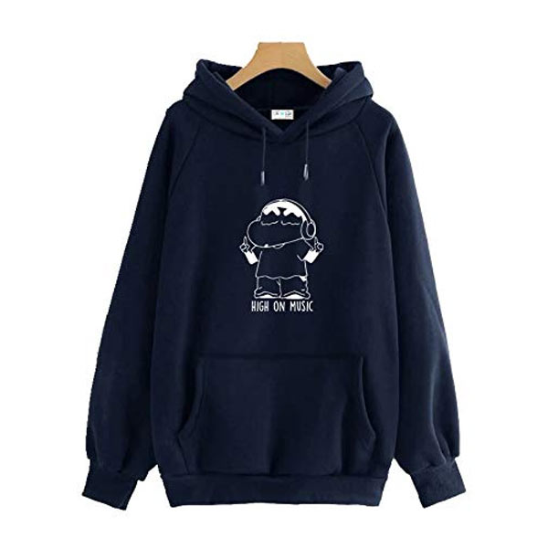 UNISEX Funky "HIGH ON MUSIC - SHINCHAN" PRINTED COTTON ,FULL SLEEVE Sweatshirt Hoodie & Kangaroo POCKETS and CAP. Same as shown in picture.